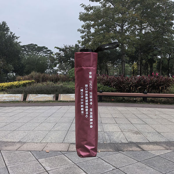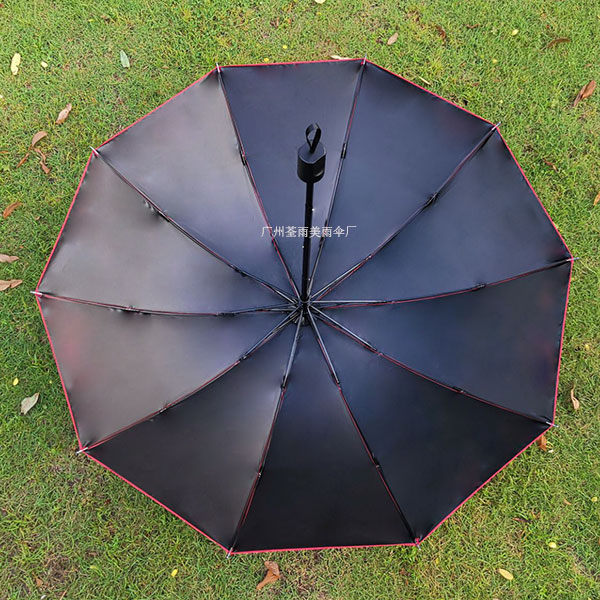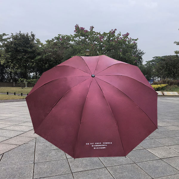 黑胶布23寸10骨三折雨伞、伞面单色丝印一面,到四杆加长中棒耐用